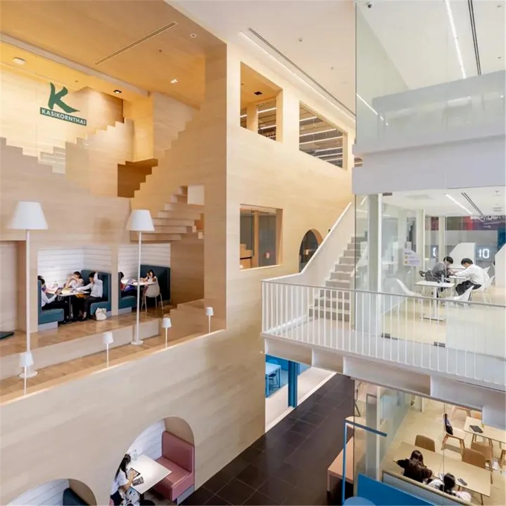 SAMYAN CO-OP是購物中心二樓的共享空間,含5個獨(dú)立又相連的建筑,設(shè)自習(xí)室、討論室、會議室等,對外開放租賃。一樓售日常用品,二樓為生活服務(wù)類店鋪,三樓融合泰國傳統(tǒng)與現(xiàn)代藝術(shù)風(fēng)格的空間。