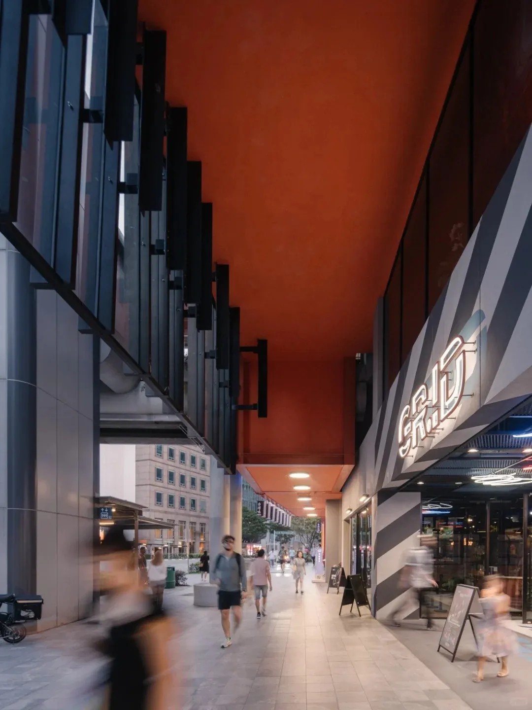 GRiD不僅是商業(yè)與教育中心,更是社區(qū)放松交流的關(guān)鍵場所。憑借獨(dú)特的后工業(yè)美學(xué),成功將街角轉(zhuǎn)變?yōu)榧缃?、體驗、休閑于一體的現(xiàn)代化社區(qū)中心,不僅提升了建筑功能與視覺魅力,更為周邊居民帶來了全新的生活方式與情感價值體驗,成為社區(qū)生活的活力源泉。