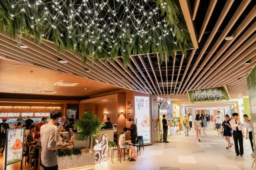 項(xiàng)目在2023年實(shí)現(xiàn)煥新開業(yè),重開后實(shí)現(xiàn)了外立面和室內(nèi)設(shè)計(jì)在視覺層面煥然一新,綠地面積提升了1.4倍,花園式休憩空間、星空步道、環(huán)保主題亭子,與休閑輕餐的外擺區(qū)相得益彰,進(jìn)一步凸顯外廣場(chǎng)的休閑氛圍。與此同時(shí),整個(gè)項(xiàng)目還增加了約450㎡立體綠化面積??臻g改造充分考量便捷出行需求,改造出近1000個(gè)停車位,并在停車場(chǎng)每個(gè)樓層設(shè)計(jì)了不同主題色,提升尋車便利性。