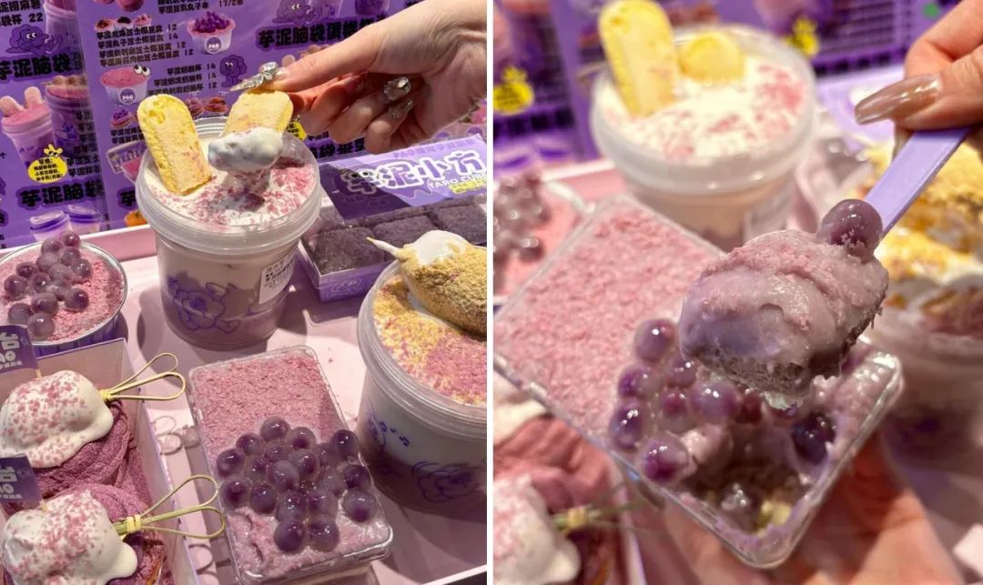 自成立以來(lái),糖泡芋泥腦袋已經(jīng)在國(guó)內(nèi)外多個(gè)城市開(kāi)設(shè)了50家門(mén)店。通過(guò)聚焦芋泥單品,開(kāi)發(fā)出43款衍生品,包括手工制作的芋泥蛋糕腦袋杯、芒果芋泥冰、芋泥丸子蛋撻等,深受消費(fèi)者喜愛(ài)。此外,該品牌還注重食材的品質(zhì),例如種植200畝荔浦芋頭,確保從源頭把控品質(zhì)。糖泡芋泥腦袋的運(yùn)營(yíng)策略實(shí)現(xiàn)了垂直品類的供應(yīng)鏈穿透。